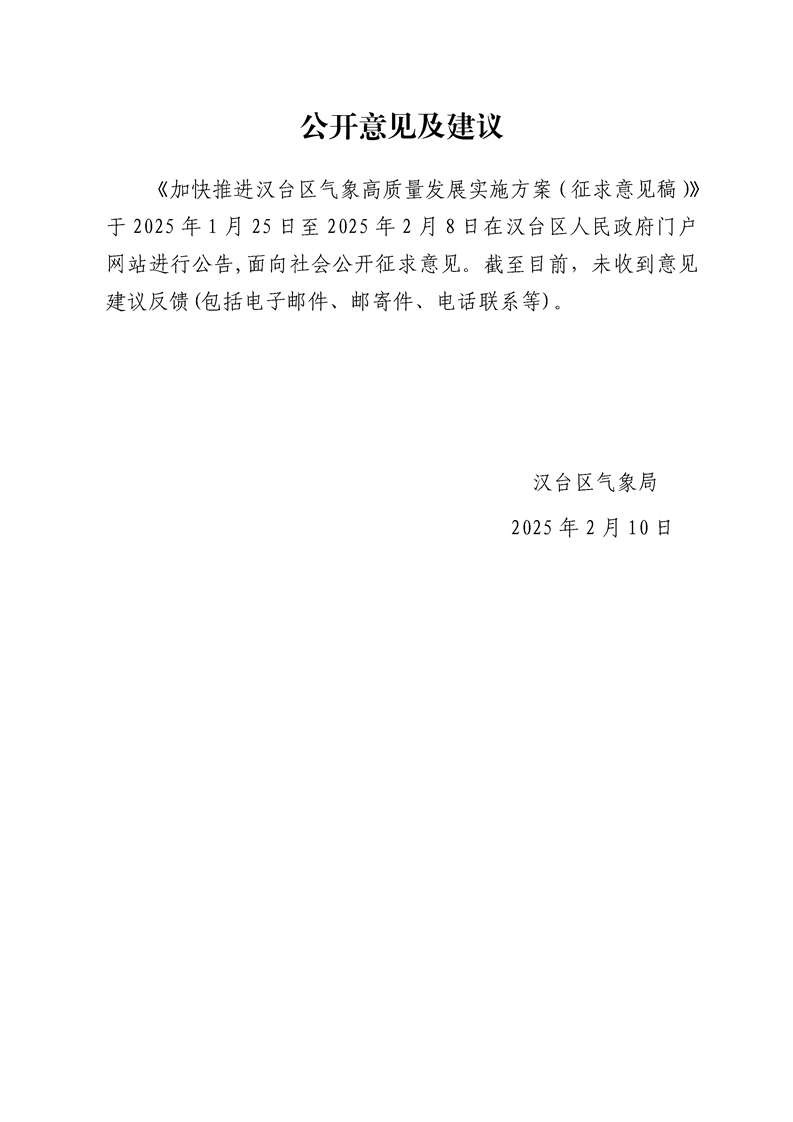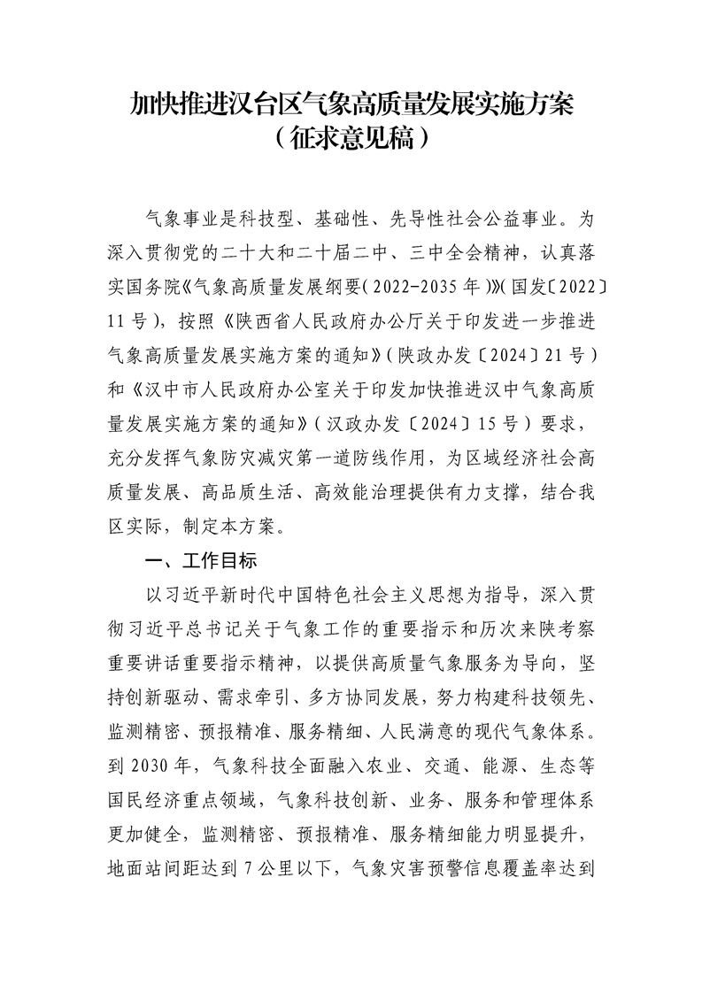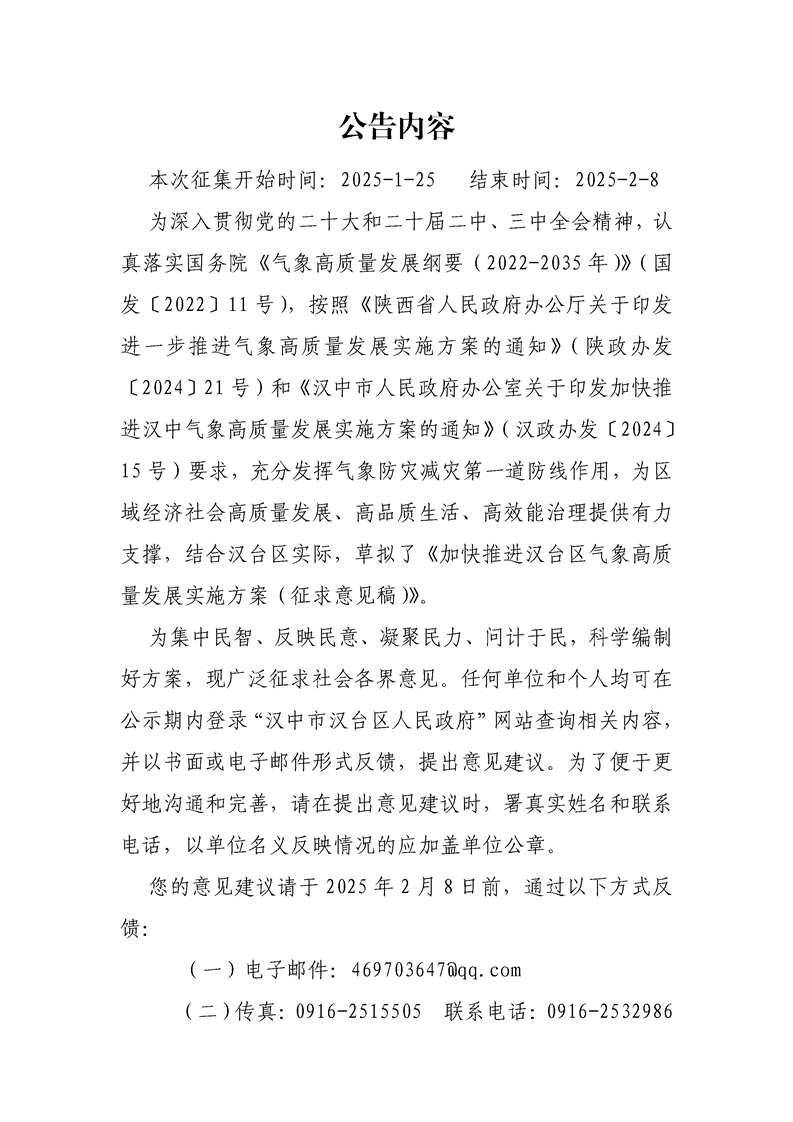汉中市汉台区气象局关于征求加快推进汉台区气象高质量发展实施方案(征求意见稿)意见建议的公告