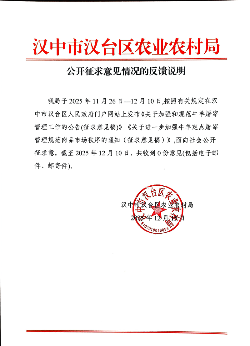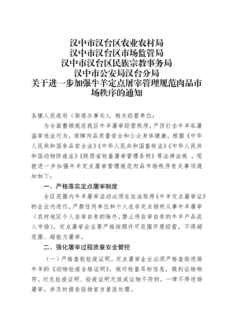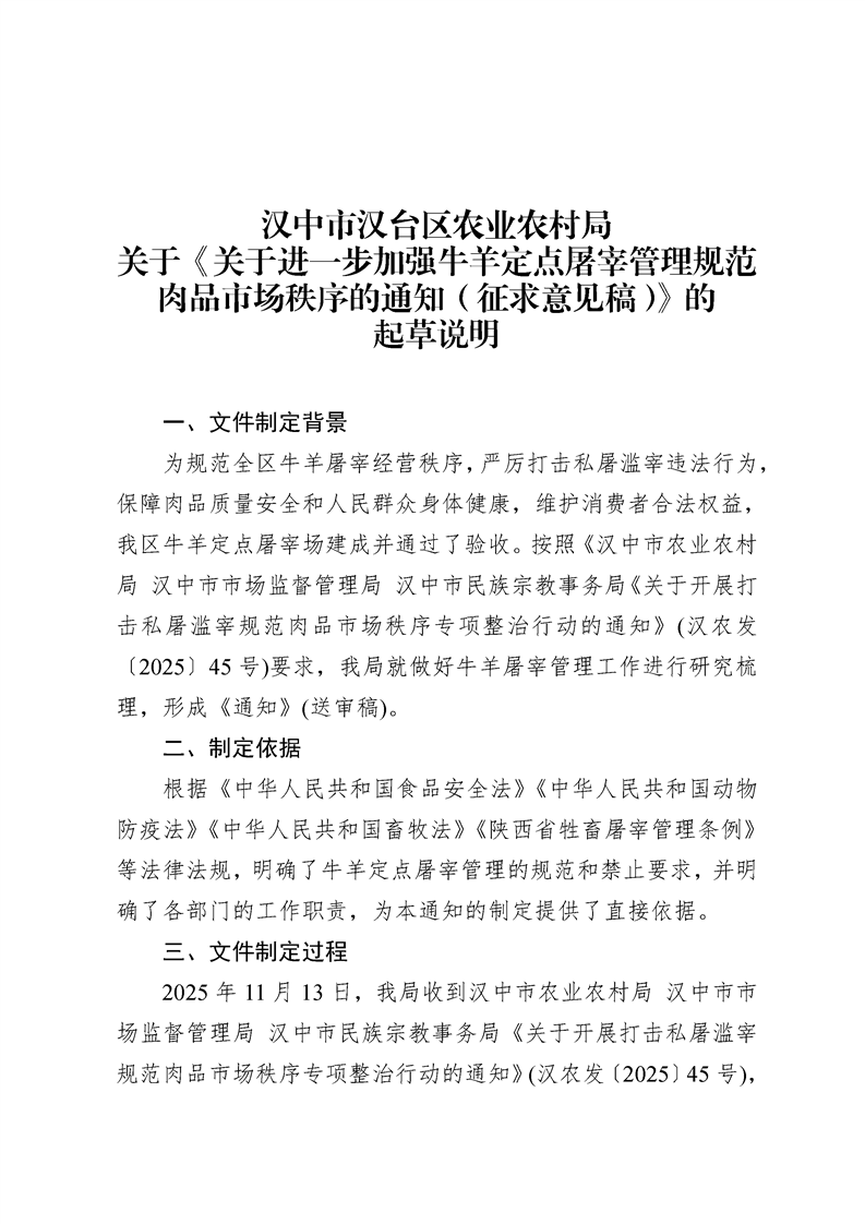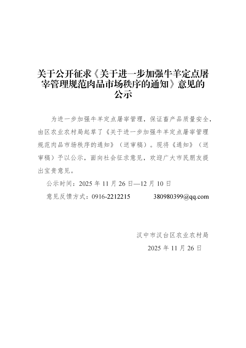 关于公开征求《关于进一步加强牛羊定点屠宰管理规范肉品市场秩序的通知》意见的公示