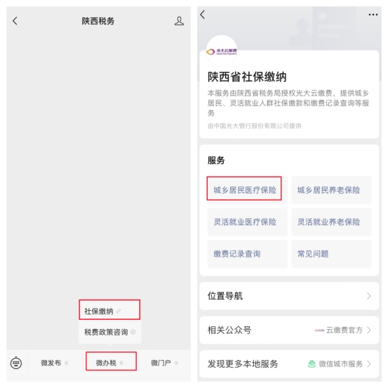(1)手机APP:中国银联“云闪付”、微信(城市服务-城乡居民医疗保险,“陕西税务”和“汉中税务”微信公众号)、支付宝(市民中心-社保-社保缴费-陕西社保缴费功能)。