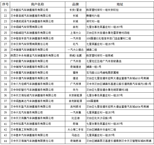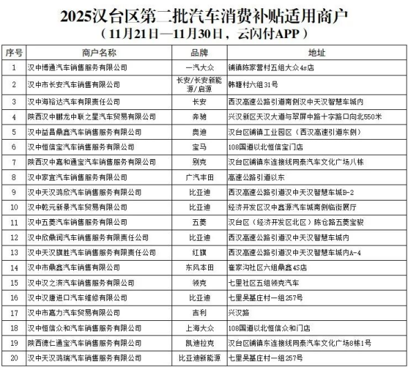 附件:汉台区第二批汽车消费补贴活动企业名单(11月)。