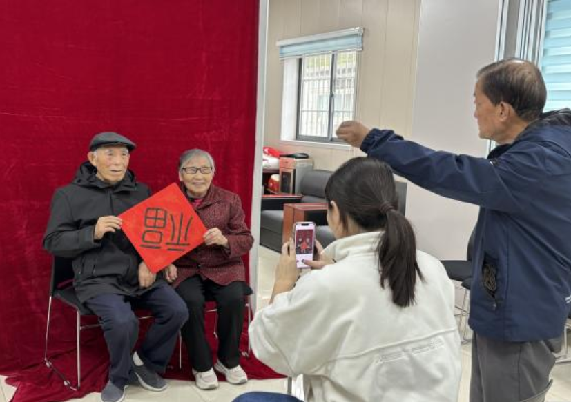 “您坐直些,笑一笑,这样拍出来更精神!”10月29日,中山街街道风景路社区新时代文明实践站内,快门声此起彼伏。这里被精心布置成“临时摄影棚”,圆框老花镜、印着“多福多寿” 的红色手牌、缀满皱纹纸的背景板,每一处细节都透着用心。