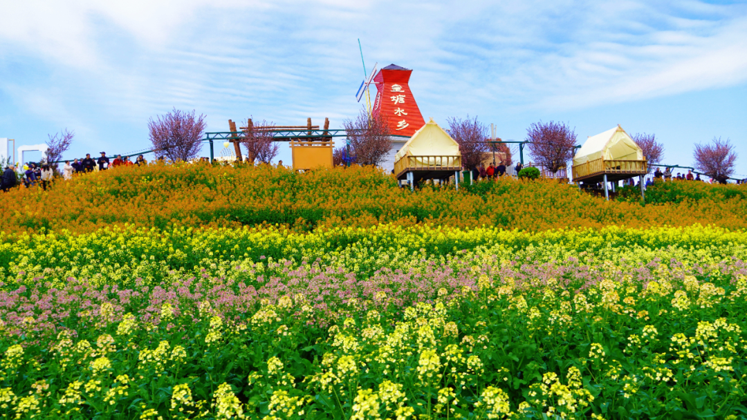 启动仪式当天,多元体验让游客玩嗨全场。全新开放的980米低空索道上,游客凌空而行,脚下是万亩花海,换个视角感受春日浪漫;观光小火车缓缓穿行在花田与湖泊间,车厢里欢声笑语不断,花香与微风包裹着每一位游客。
