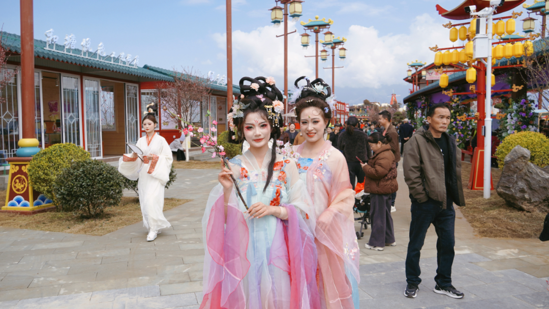 景区运营负责人翟雅博介绍,为保障活动顺利开展,前期已全面检修游乐设施,增派安全引导员,设置医疗救护点;15个摆渡车站点串联各打卡点,2元当日不限次乘坐,极大便利游客出行。同时,景区还推出汉服妆造、无人机拍摄预约等服务,全方位满足游客需求。