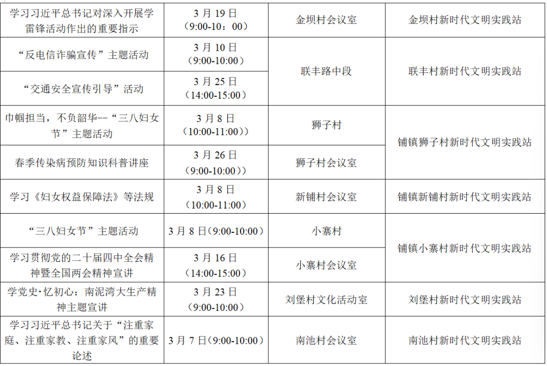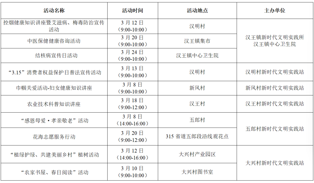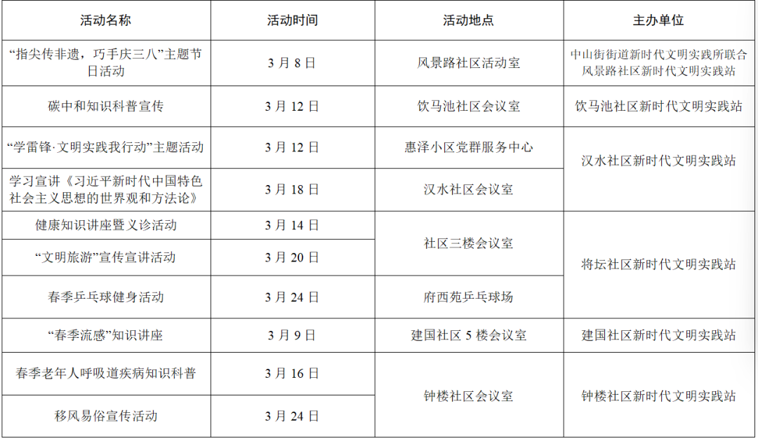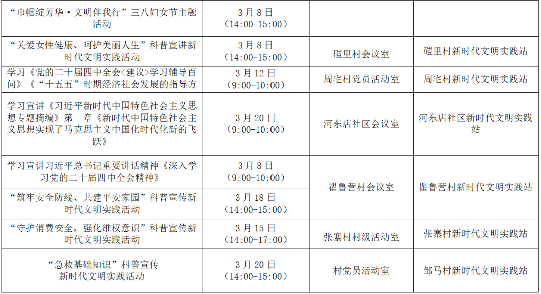 以上为部分活动计划,具体活动的开展以实际情况为准。更多活动还可关注各镇(街道)新时代文明实践所、村(社区)新时代文明实践站微信公众号、活动阵地公示的活动展板。身边的新时代文明实践活动,期待您的热情参与,让我们携手共进,争做新时代文明实践的参与者。