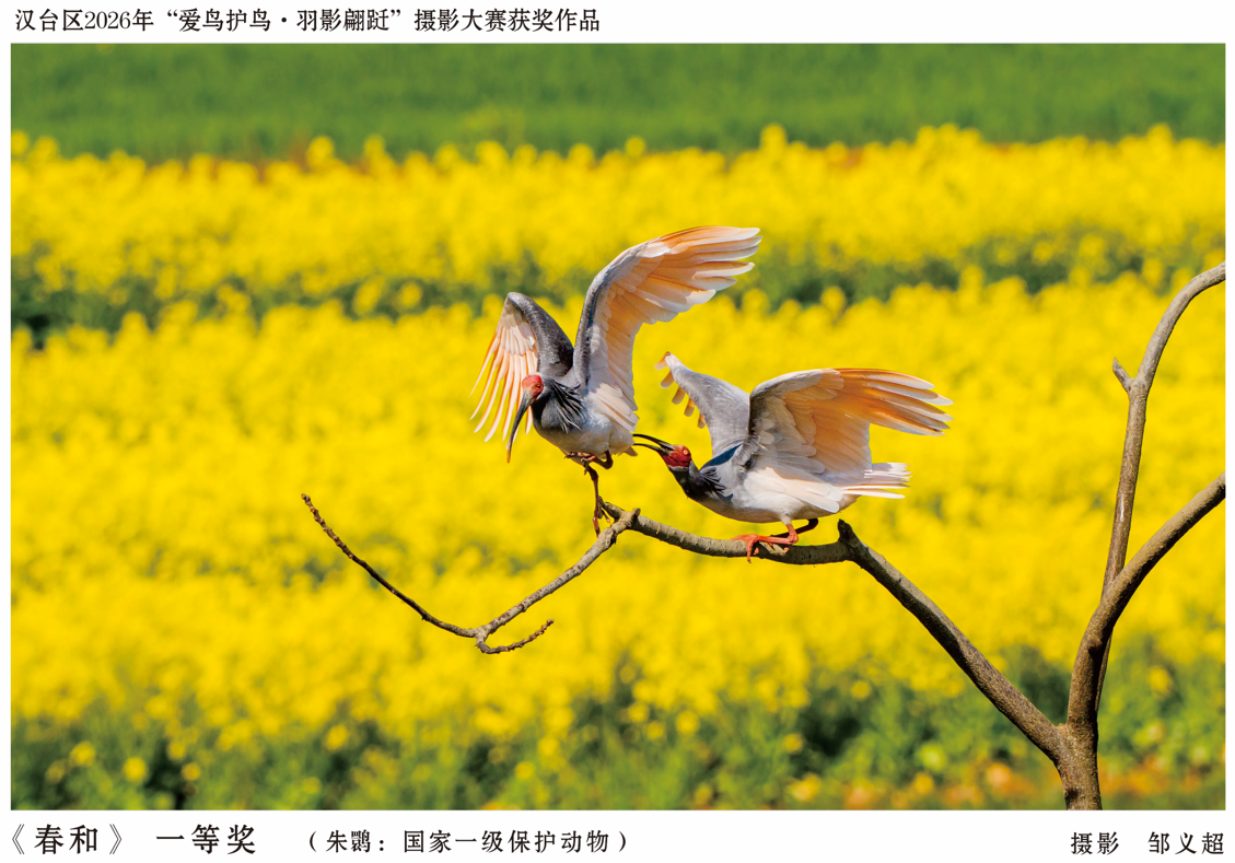 本次摄影展以“拒绝鸟类非法交易,共同守护蓝天精灵”为主题,征集到三百余幅作品,最终66幅优秀作品脱颖而出。这些作品里,有朱鹮与白鹭共舞汉江的和谐画卷,有翠鸟栖荷的灵动特写,也有红嘴鸥掠过城市天际线的日常诗意,生动展现了汉台优美的生态景观和人与自然共生的美好模样。