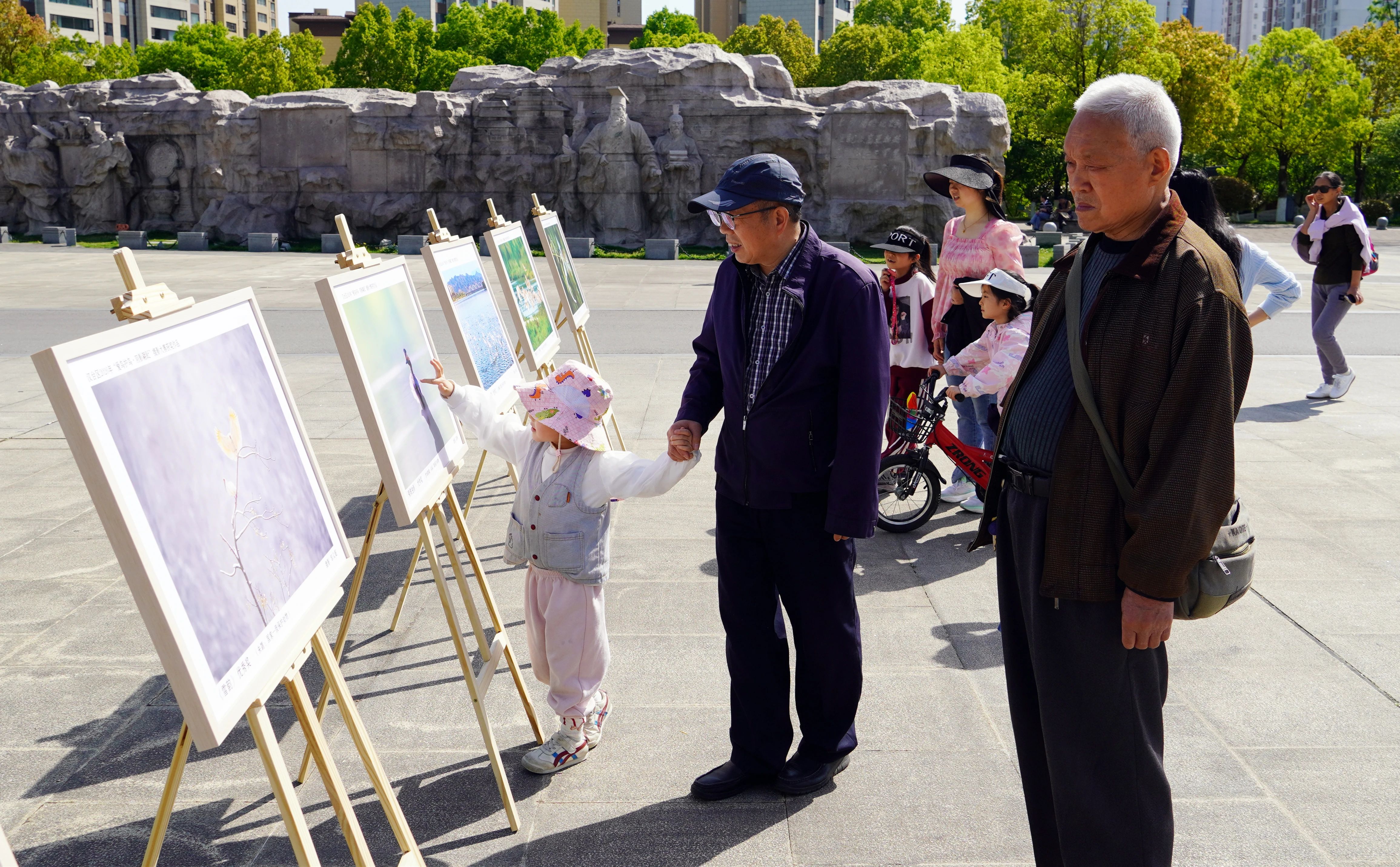 展区角落,动人的场景随处可见:一位老人指着照片里的朱鹮,给孙女讲述45年前朱鹮濒临灭绝的往事;几位摄影爱好者围着作品交流,相约周末再去湿地“蹲点”,记录更多羽类灵动瞬间。