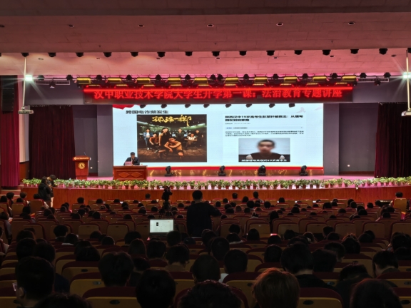 近日,区人民法院河东店法庭干警走进汉中职业技术学院,为300余名在校学生带来一堂法治教育专题讲座。讲座中,法官助理张驰航结合人民法院审理的典型案例,就如何防范电信诈骗、校园套路贷进行了深入浅出的讲解,引导同学们透过社会热点事件建立法律思维、树立法律意识,学会用法律武器保护自己,向不法行为说“不”。(通讯员 张驰航)