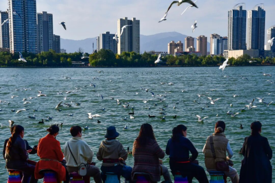 从那年开始,一群因“鸥”结缘的爱鸟人士自发地守护这些远方“来客”。他们成立“红嘴鸥之家”志愿者团队,为红嘴鸥“送餐”“护航”。
