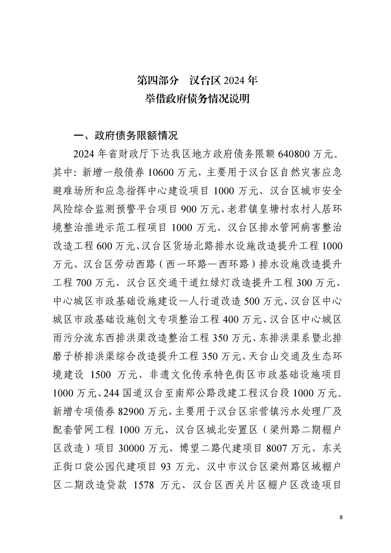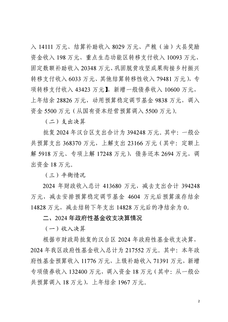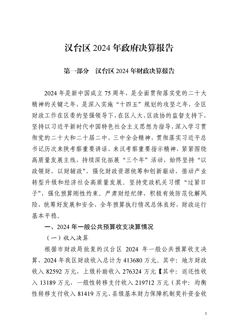 汉中市汉台区2024年政府决算报告