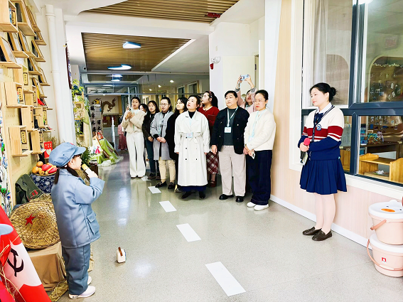 随后,与会人员开展沉浸式观摩,实地感受该园以“强健体魄、艺术创想、家国情怀”构建“纵向有梯度、横向有关联”的立体环境体系,将静态环境转化为与儿童互动的“活教材”,彰显“幼儿为本,追逐童心”的办园理念。