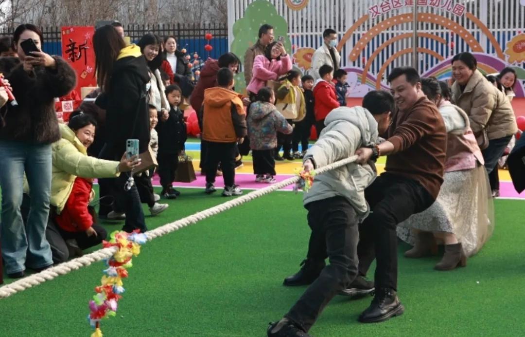 市集活动后,一场激烈的班级家长拔河比赛将气氛推向高潮。赛场上的团结拼搏与场边的加油呐喊,生动展现了家园共育的凝聚力,也为新年增添了昂扬向上的精神气息。