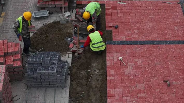 4月17日,记者在天汉大道与北一环交叉口东北角看到,工人们正忙着铺设崭新的灰红色透水砖,砖面平整防滑、排水性优良。据悉,该区域破碎改造面积共466平方米,目前已完成透水砖铺设366平方米,剩余工程正加紧推进。