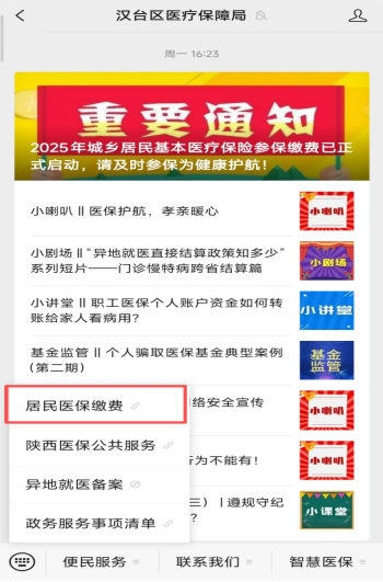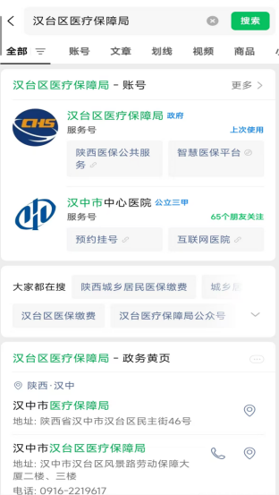 第一步:微信搜索“汉台区医疗保障局”服务号