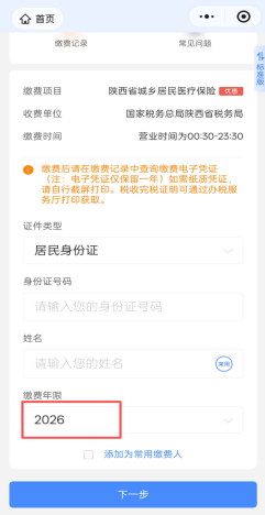 第四步:登录后填写参保人身份信息,缴费年限选择