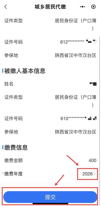 第一步:先进行家庭共济绑定(已绑定的可以跳过这一步)。 1.支付宝/微信搜索“陕西医保”小程序,进入→登录 2.点击“服务”→进行“家庭共济绑定” 3.输入被绑定人身份信息,完成签名后提交 第二步:进入个账代缴。 1.点击“服务”→“个账代缴” 2.选择家庭成员,点击“代缴” 3.选择“2026”年度→“提交” 第三步:代缴信息查询。 点击“服务”→“代缴信息”