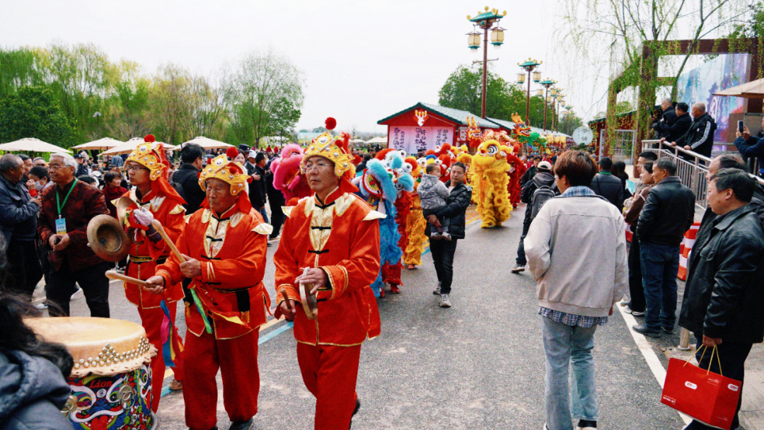 当日的皇塘水乡,一步一景、一景一欢,入园即享满满仪式感。景区精心设置11处实景演绎点位,搭配沉浸式NPC互动,主干道上上演的三国典故情景剧,让游客一秒穿越时空,沉浸式感受“两汉三国”风韵。连片的油菜花田如金色绸缎,铺展在碧水青山之间,微风拂过,花浪翻涌,与错落村舍、蜿蜒观光步道、澄澈湖面交相辉映,随手一拍皆是无滤镜春日大片,游客们纷纷驻足流连,用镜头定格这份春日美好。