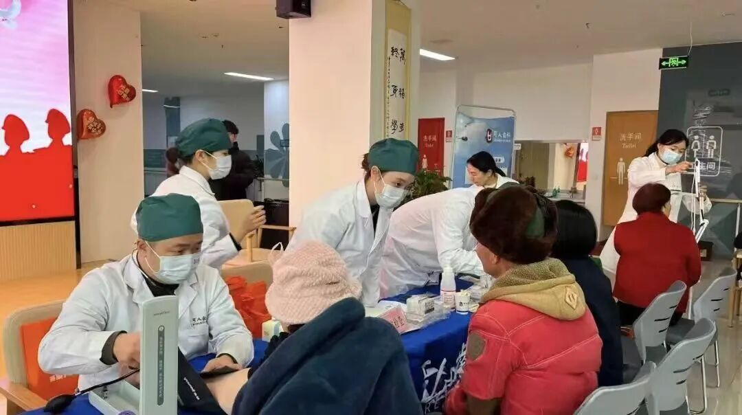 12月4日,在万福综合养老服务中心开展的“红心向党 情暖老兵”志愿日活动中,医生志愿者正在为老兵提供血压血糖测量及健康咨询服务,61岁的老兵简兆林感慨:“我们平时去医院不方便,今天专家到家门口免费检查,讲得又仔细,心里特别暖。”