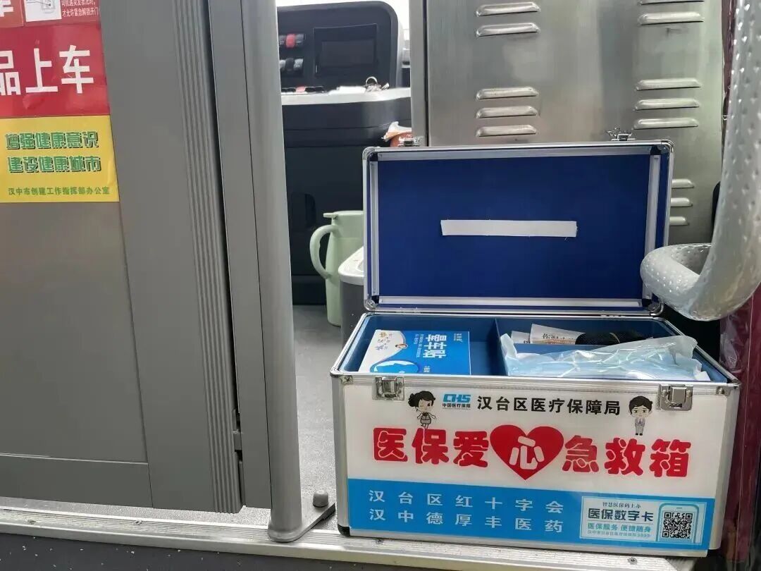 同时,在区红十字会的支持下,在车上配备了医保爱心急救箱,箱内配有医用耗材、应急药品等急救物品,为出行途中突发不适的群众提供即时应急保障,以细微之举传递医保温度,筑牢安全出行防线。