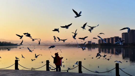 从那年开始,一群因“鸥”结缘的爱鸟人士自发地守护这些远方“来客”。他们成立“红嘴鸥之家”志愿者团队,为红嘴鸥“送餐”“护航”。