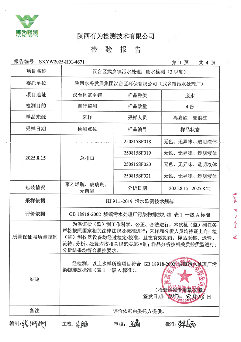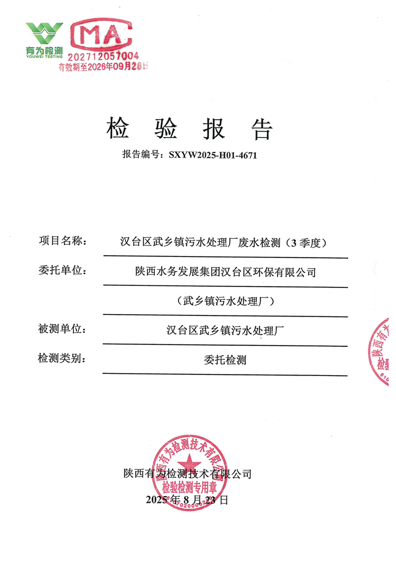 汉台区2025年第三季度武乡、河东店镇污水处理厂废水检测报告