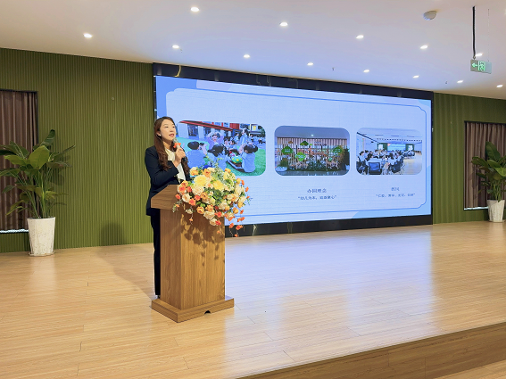 活动中,城东幼儿园园长陈佳以《一圈一年轮,一景一课程》为题汇报,她从“自然蕴趣、课程育人、环境润心”三大板块,系统分享了园所在区教体局爱国主义教育主题引领下的系统思考与实践路径。让种植成为环境主角,将自然元素转化为可感知、可探索的教育资源,只为给孩子创造“走出户外即能观察、发现、管理”的成长场域,完成从“小我”到“大我”的情感升华,让爱国种子在“生命绽放的童年院子”里扎根生长。