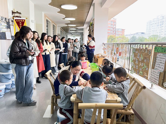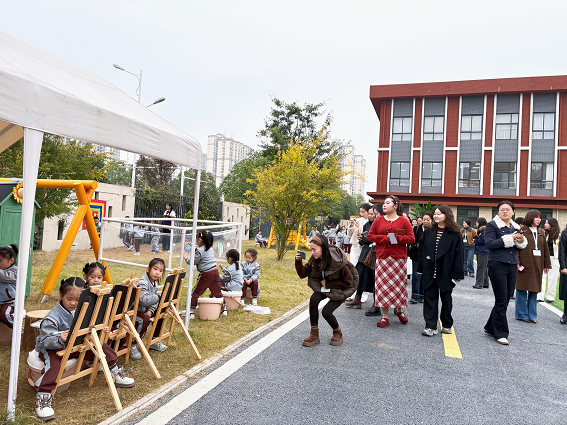 随后,与会人员开展沉浸式观摩,实地感受该园以“强健体魄、艺术创想、家国情怀”构建“纵向有梯度、横向有关联”的立体环境体系,将静态环境转化为与儿童互动的“活教材”,彰显“幼儿为本,追逐童心”的办园理念。