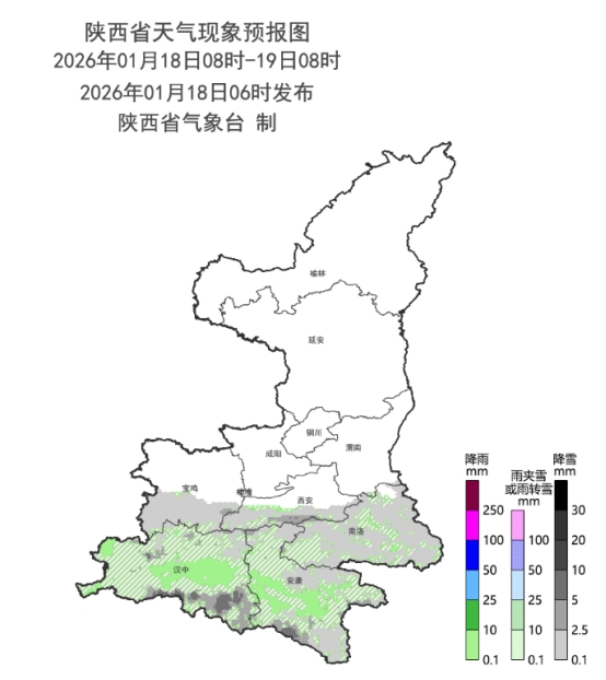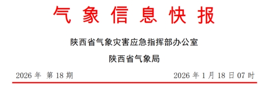 陕西省气象台2026年1月18日7时发布气象信息快报。预计未来四天全省有一次大范围寒潮雨雪冰冻天气过程,今日中北部有降温吹风天气,南部地区有雨雪。