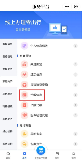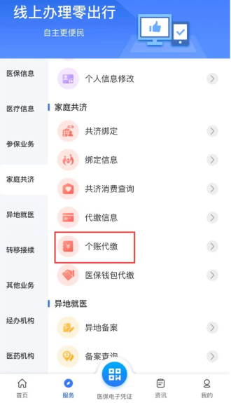 第一步:先进行家庭共济绑定(已绑定的可以跳过这一步)。 1.支付宝/微信搜索“陕西医保”小程序,进入→登录 2.点击“服务”→进行“家庭共济绑定” 3.输入被绑定人身份信息,完成签名后提交 第二步:进入个账代缴。 1.点击“服务”→“个账代缴” 2.选择家庭成员,点击“代缴” 3.选择“2026”年度→“提交” 第三步:代缴信息查询。 点击“服务”→“代缴信息”