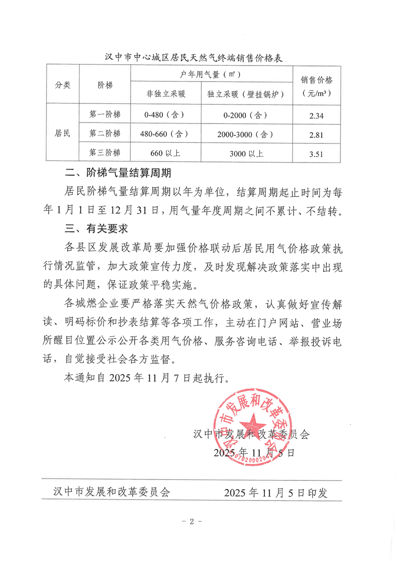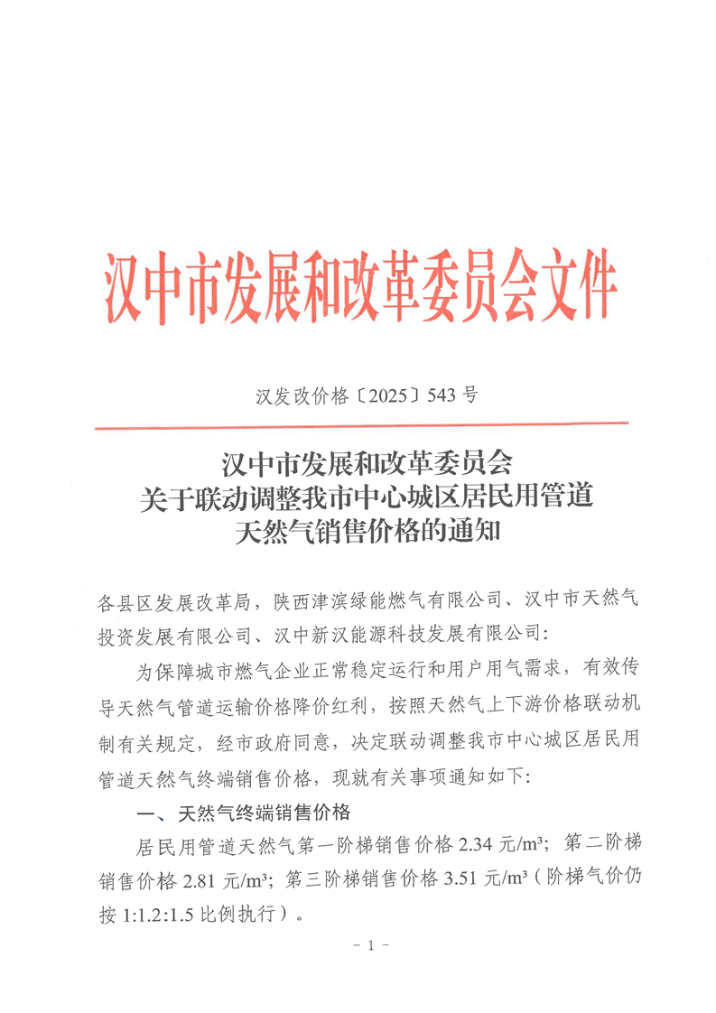 关于联动调整我市中心城区居民用天然气销售价格的通知
