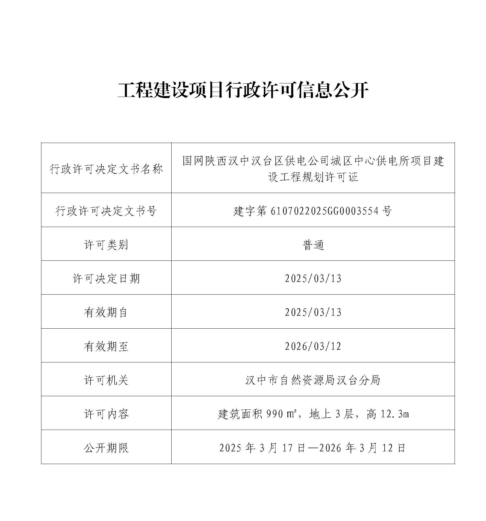 国网陕西汉中汉台区供电公司城区中心供电所项目工程规划许可批后公开