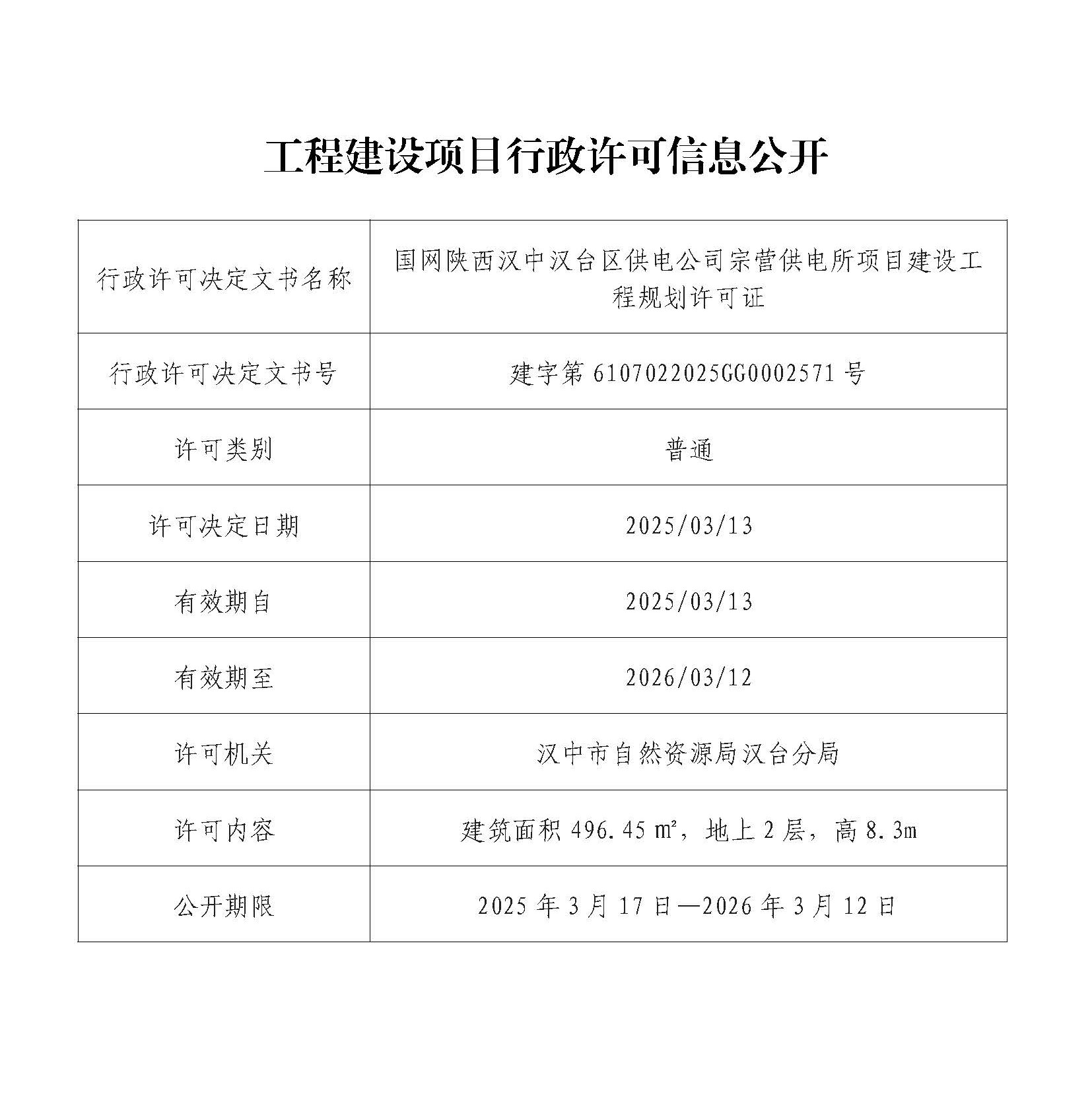 国网陕西汉中汉台区供电公司宗营供电所项目工程规划许可批后公开