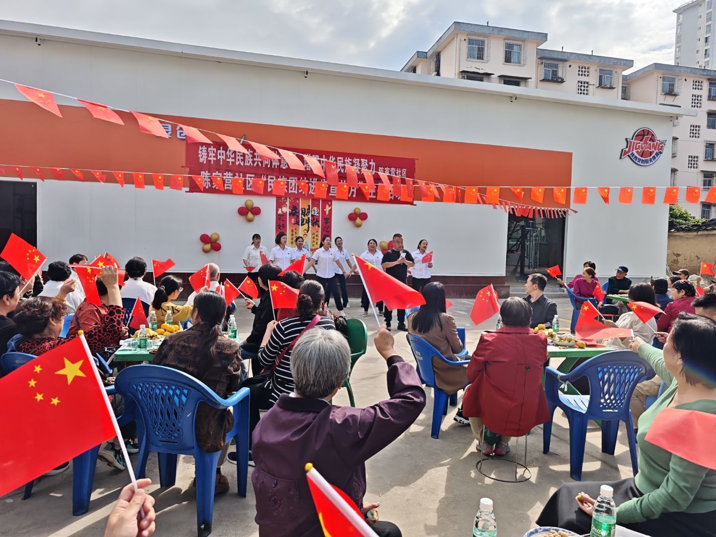 为筑牢中华民族共同体意识,增强中华民族凝聚力,弘扬中华优秀传统文化,增进邻里感情,打造“和谐社区一家亲”的邻里文化,9月29日下午14:30,汉台区东关街道陈家营社区在社区群众大舞台组织开展“中秋国庆喜相逢·共筑民族团结情”联谊活动。市、区民族宗教事务局、东关街道相关领导和社区工作人员、回汉居民欢聚一堂,看演出、吃月饼、话团圆,共庆国庆中秋佳节。