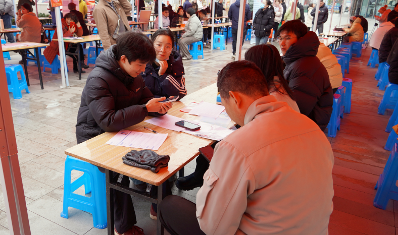 上午10时许,各企业展位前已是人头攒动。来自制造、服务、商贸、信息技术等多个行业的招聘展板依次排开,岗位信息、薪资待遇、福利保障等一目了然,企业负责人热情推介、细致答疑。求职者们手持简历,穿梭于不同区域,或仔细浏览岗位信息,或与企业代表深入沟通,满是对新一年事业发展的憧憬与期待。