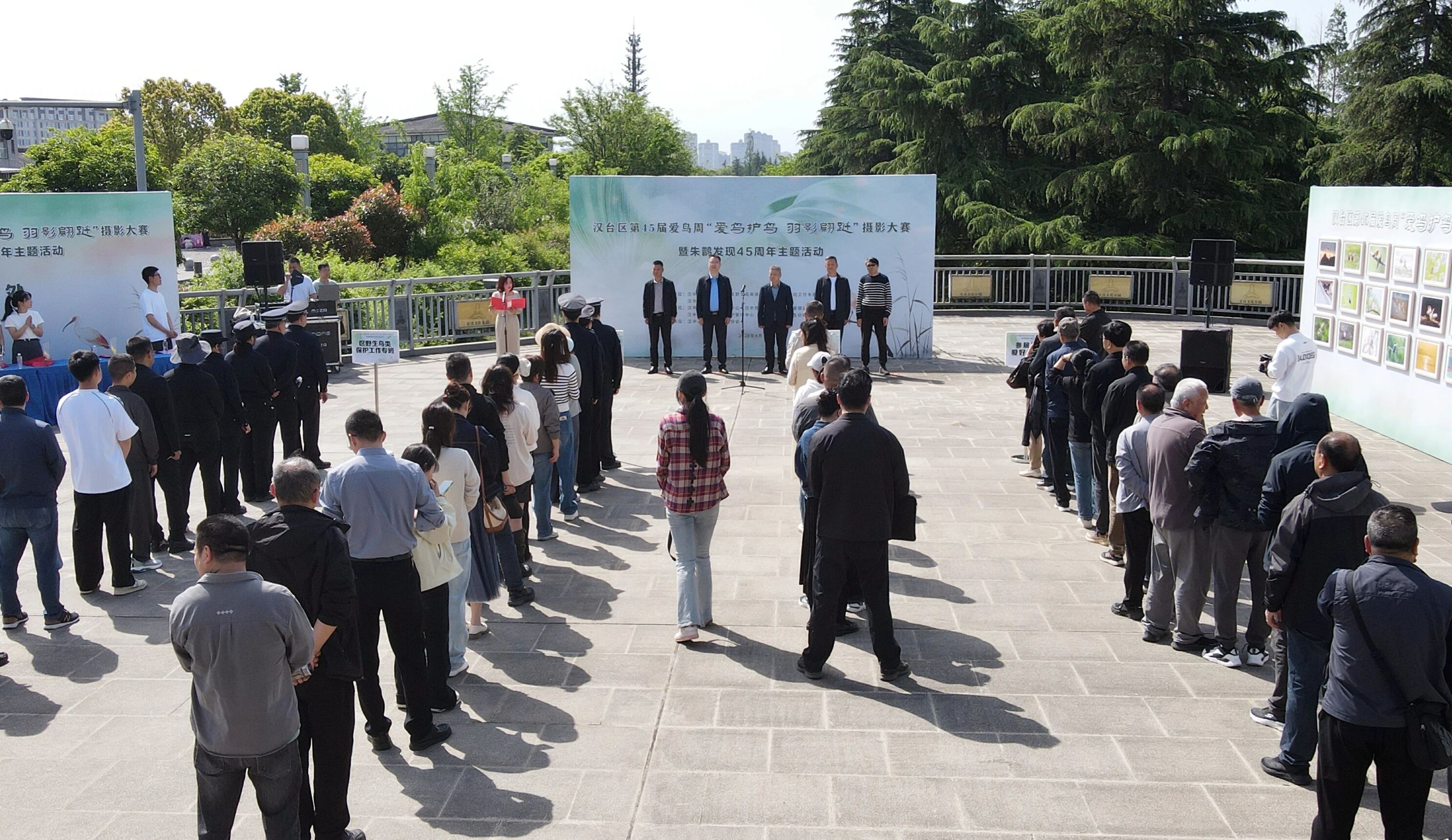 “看着照片里的朱鹮,真不敢想,几十年前这种鸟差点消失。”4月16日,汉台区第45届“爱鸟周”暨纪念汉中发现朱鹮45周年“爱鸟护鸟 羽影翩跹”生态摄影展启幕,市民张女士带着孩子驻足观展,望着照片中灵动的羽影,满心感慨。百余幅摄影作品静静陈列,用光影串联起45年“鹮”归之路,诉说着汉台人与鸟、城与自然的温情故事。