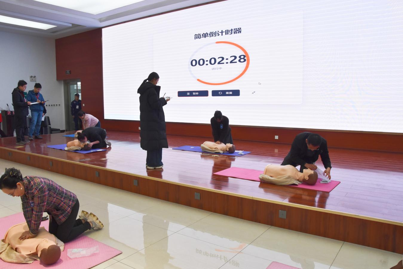 大赛紧扣“生命至上、安全第一”理念,设置理论知识考核与现场实操比拼两大环节。来自全区各行各业的96名职工同台竞技,围绕应急救护基础理论知识、心肺复苏(CPR+AED)、创伤救护(止血、包扎)等应急救护核心技能展开激烈角逐。