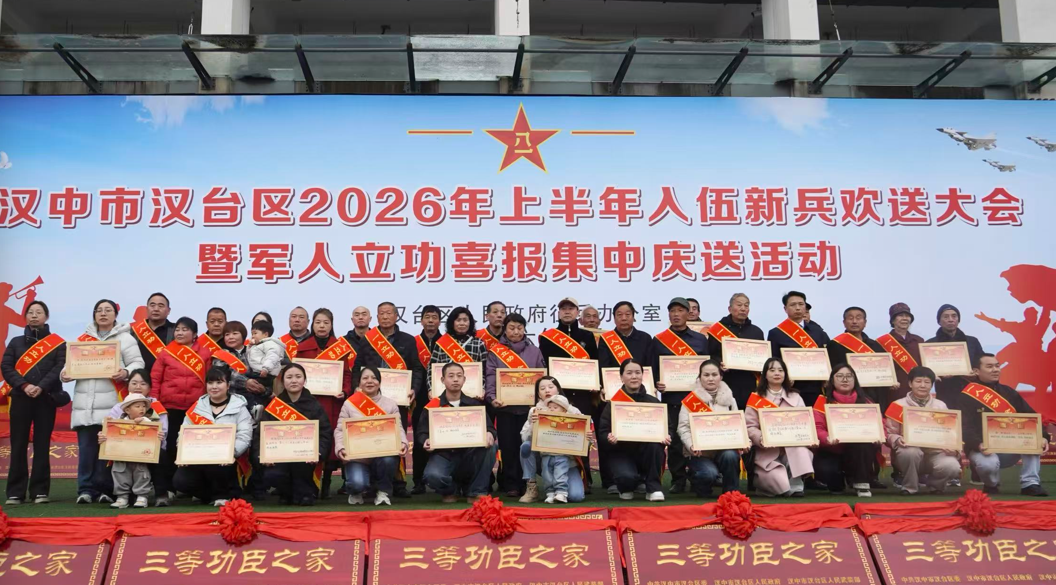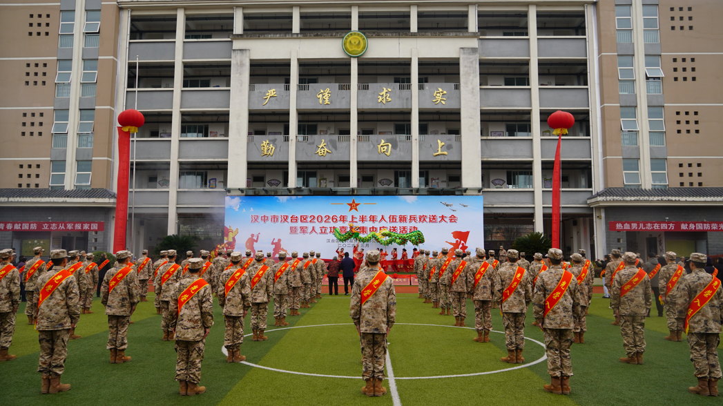 3月15日,汉台区征兵办举行2026年上半年入伍新兵欢送大会暨军人立功喜报集中庆送活动。区委常委、常务副区长秦超出席并致欢送词。区委常委、区人武部何含江,区人武部蔺艺等出席。