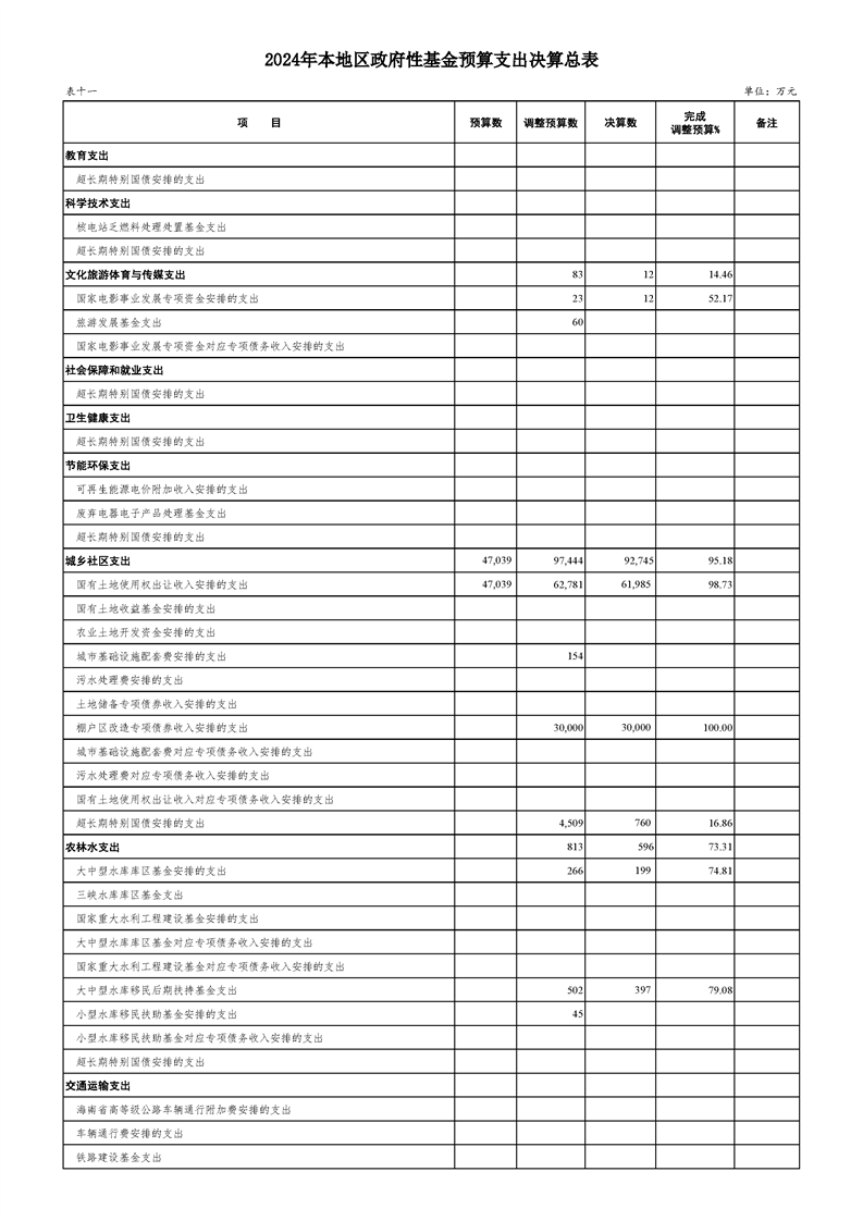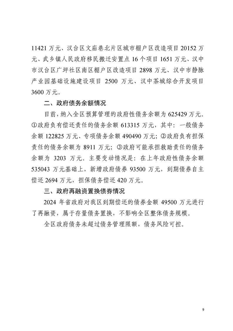 汉中市汉台区2024年政府决算报告