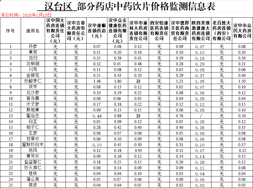 为了让人民群众及时掌握药品价格信息,充分发挥医保对药品价格的引导作用,汉台区医疗保障局对辖区内社会使用量较大的123种药品、50种中药饮片价格信息定期进行监测并发布,切实保障群众对药品价格的知情权、选择权和监督权,让购药群众“价比三家”,引导零售药店正确合理定价,进一步加强行业自律。