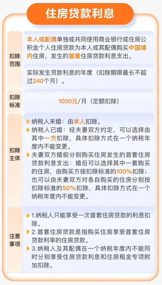 纳税人只能享受一次首套住房贷款的利息扣除。